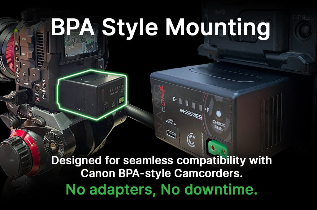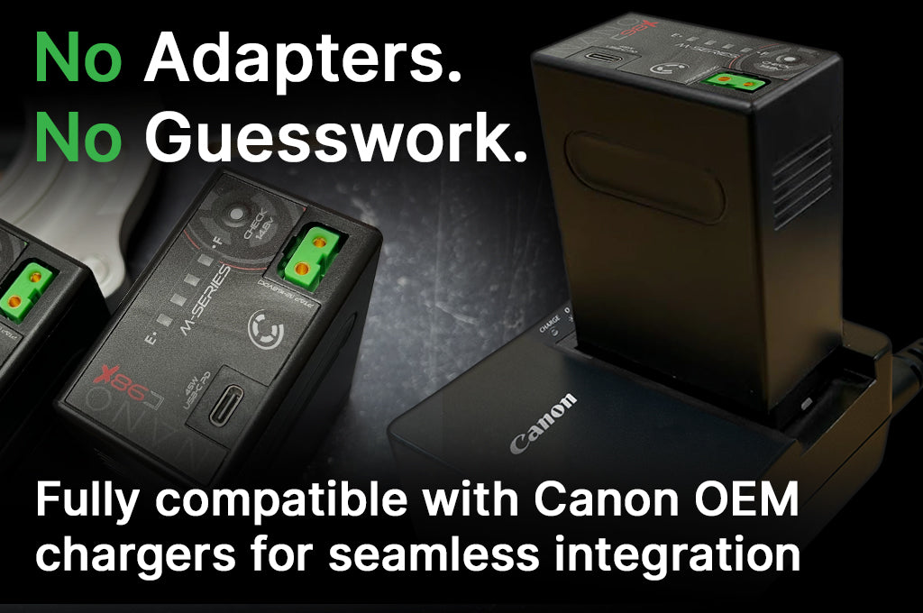 Now part of the NANOX M-Snap Series, the C98MX introduces Core SWX’s M-Snap™ magnetic charging platform, allowing users to stack multiple battery packs and charge them in parallel through a single PDPro connection. This streamlined solution eliminates cable clutter and reduces charging time, helping crews move faster between shoots. The USB-C PD port also enables device charging and direct battery recharge, enhancing portability. Fully compatible with OEM chargers and designed for long runtime performance, the NANO-C98MX brings premium power management and innovative charging to Canon shooters looking for reliable, compact battery solutions.