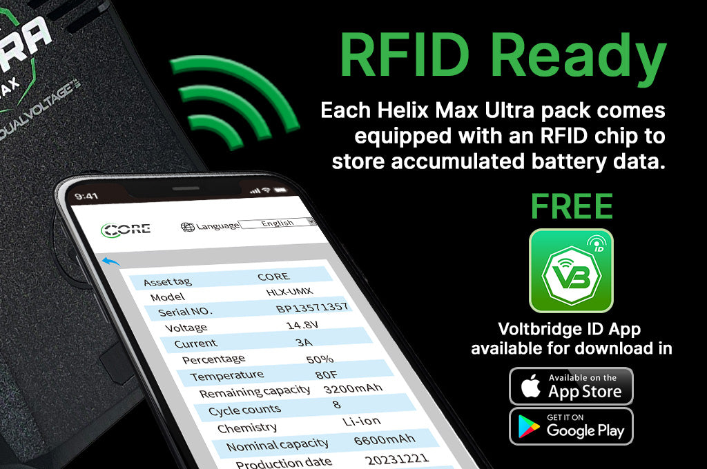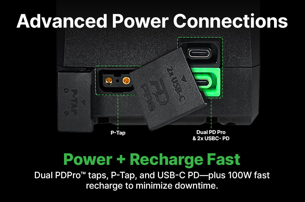 Equipped with advanced auxiliary outputs—including dual PDPro™ taps, USB-C PD, and P-Tap—the Helix Max Ultra powers everything from wireless transmitters to high-draw LED fixtures. USB-C PD input enables fast recharging up to 100W, minimizing downtime. VoltBridge™ iD integration offers smart diagnostics, battery health, and firmware insights via mobile app, allowing professionals to monitor power systems in real time. Available in 99Wh, 158Wh, 297Wh, and 395Wh options, and in V-Mount, G-Mount, and B-Mount configurations. The 99Wh and 158Wh models are UN38.3 certified and IATA-compliant, making them travel-ready for global productions demanding rugged, intelligent, and uncompromising power solutions.